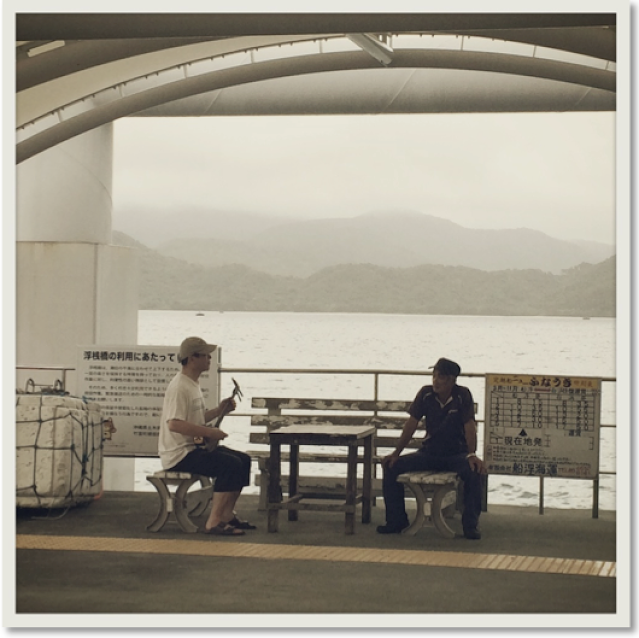 行きの船で下船のおり、一緒に写真を撮ってほしいと言うと、無愛想に却下された。